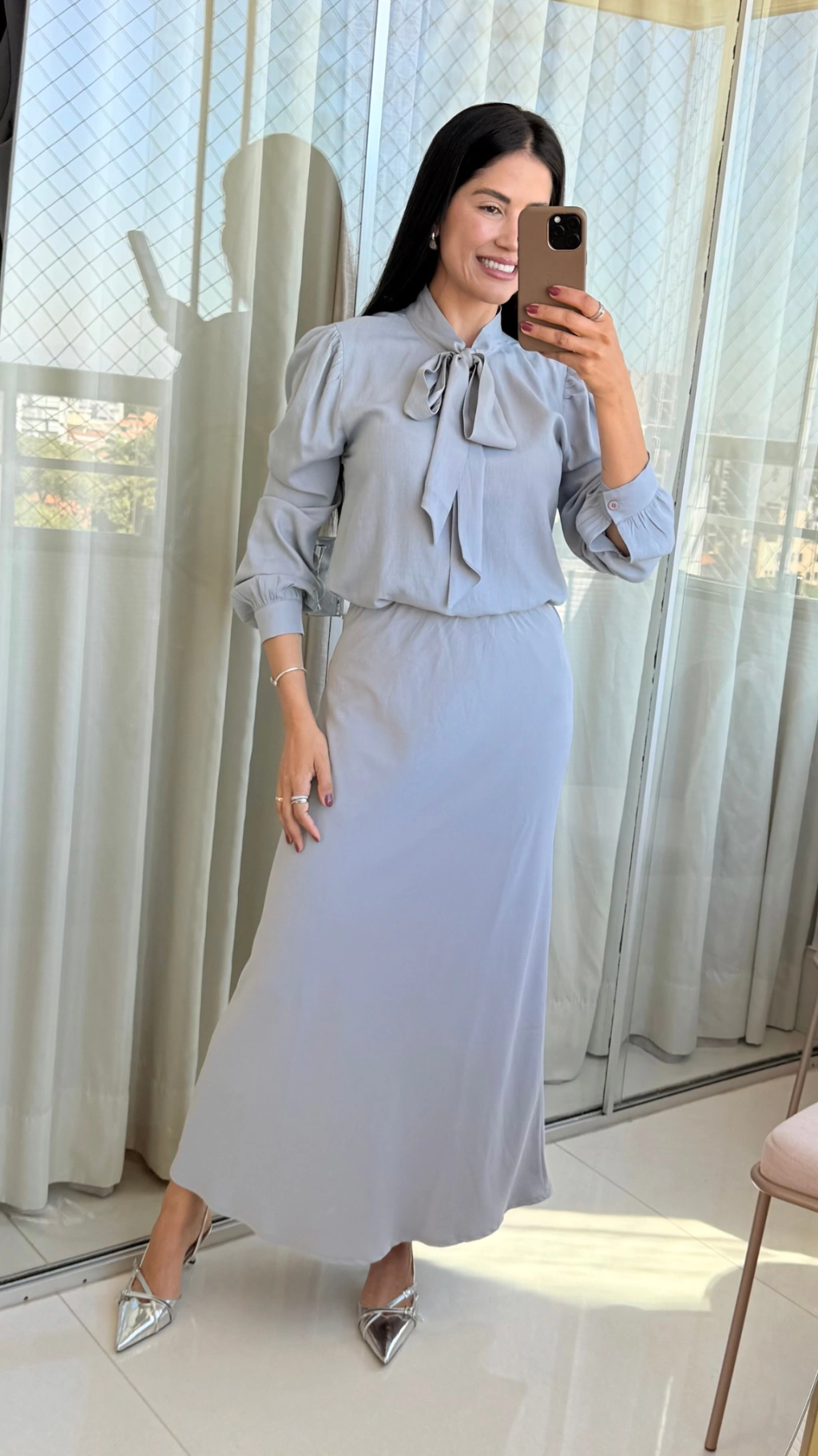 A Camisa Laço Elegance é a peça perfeita para quem busca sofisticação com um toque feminino. Confeccionada em tecido leve e delicado, ela se destaca pelo detalhe de laço na gola, que traz charme e elegância instantâneos ao look. As mangas longas com punhos marcados complementam o visual refinado, ideal para composições que vão do trabalho a eventos mais formais.