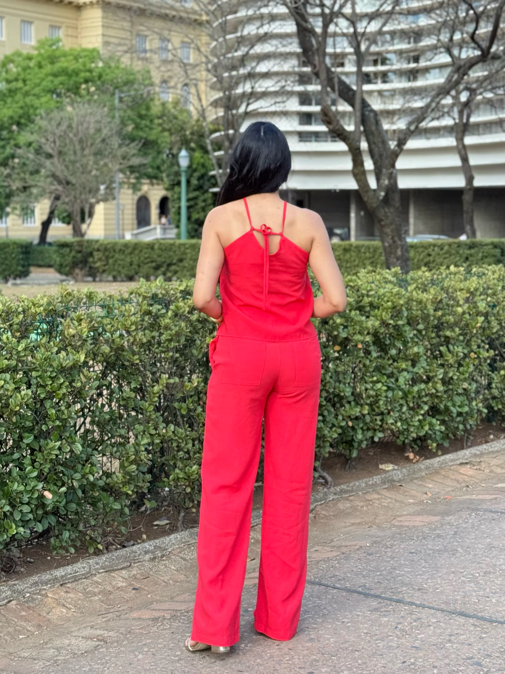 Possui amarração na parte de trás.