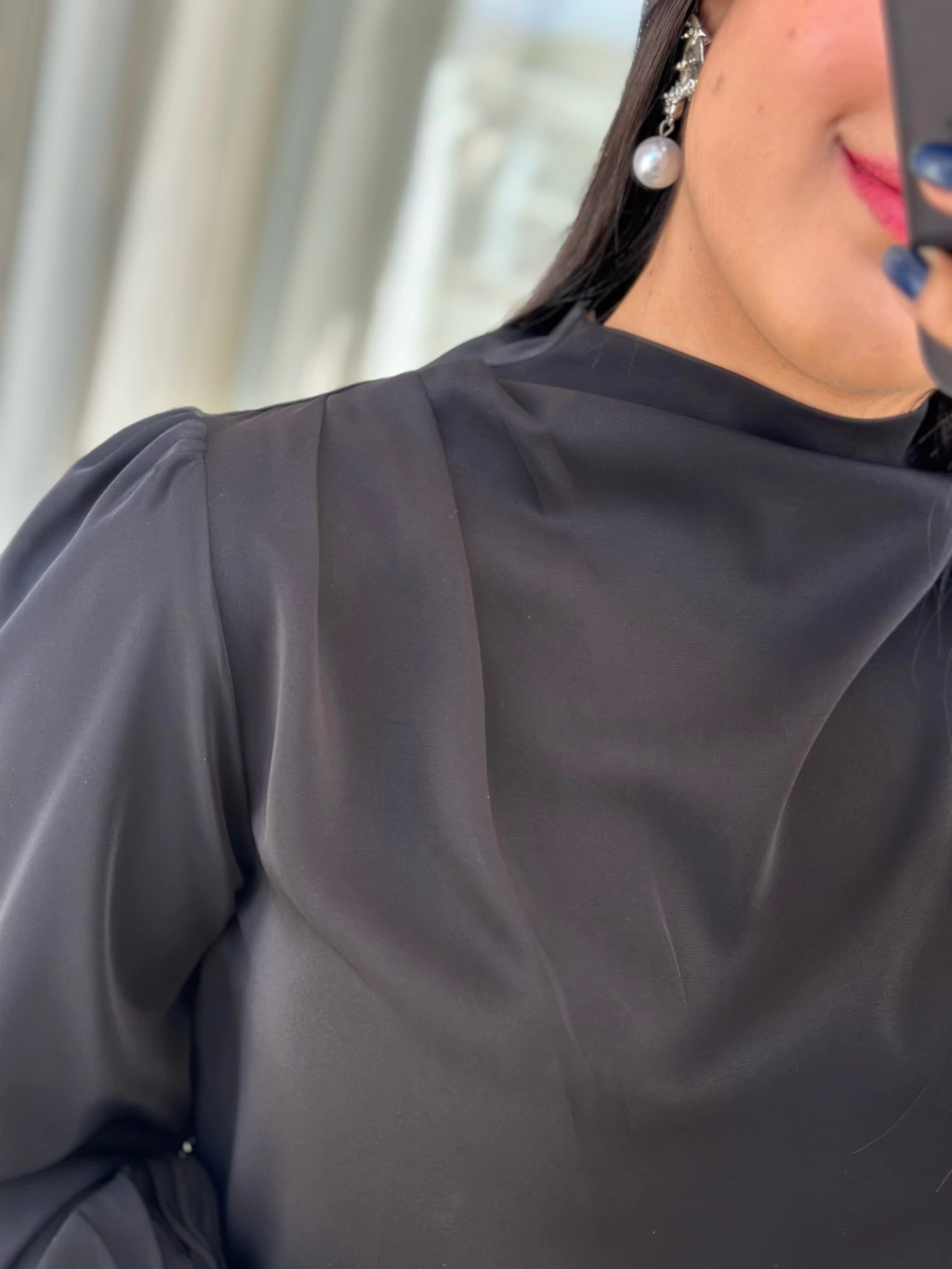 Blusa preta de manga longa com detalhe em pregas nos punhos, perfeita para compor looks elegantes e sofisticados. Combine com saias ou calças de alfaiataria e crie produções modernas para o trabalho ou ocasiões especiais. ✨🖤