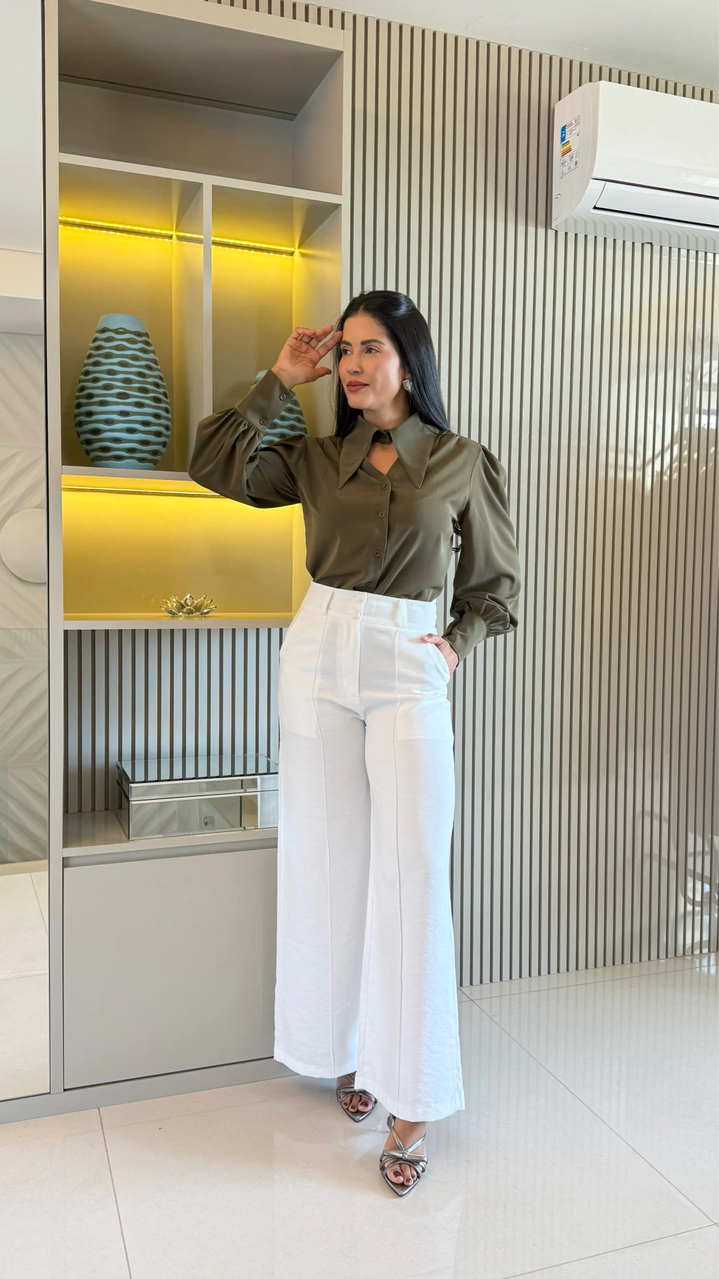 Modelagem pantalona com recortes que alongam a silhueta