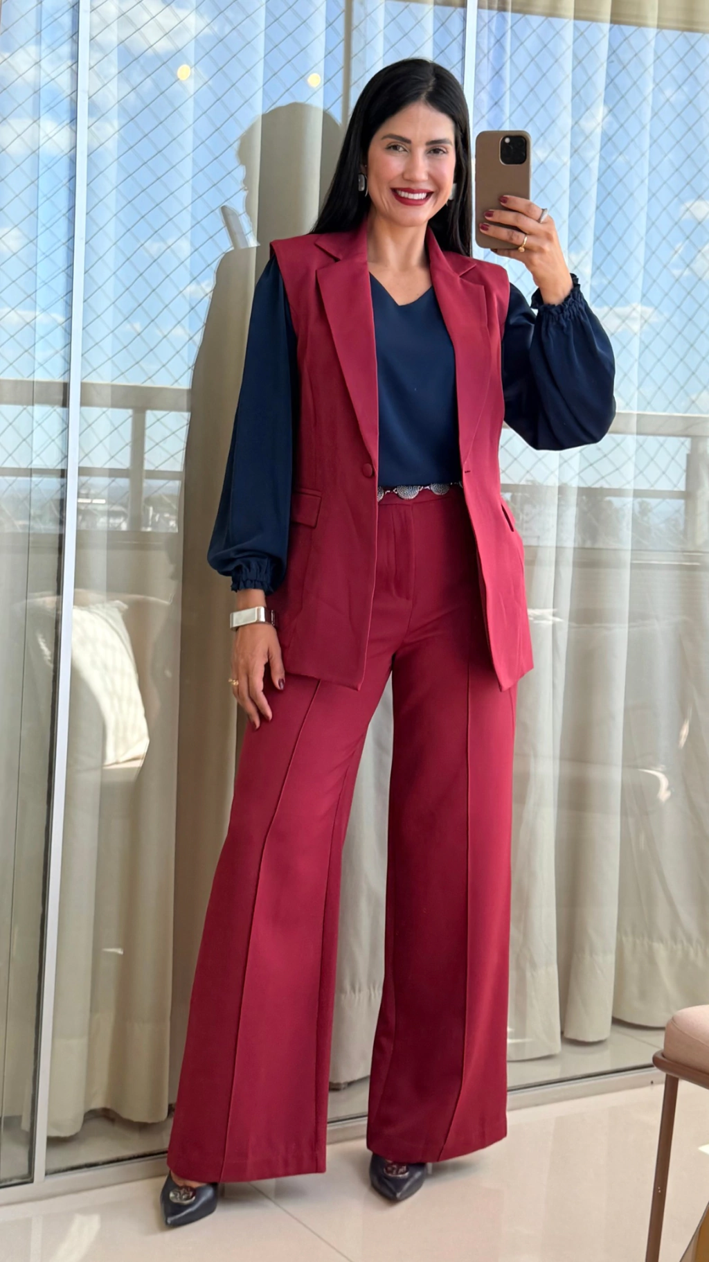 Disponível nas cores cinza e cereja, é ideal para composições formais ou despojadas combine com camisas, blusas justas ou até vestidos.