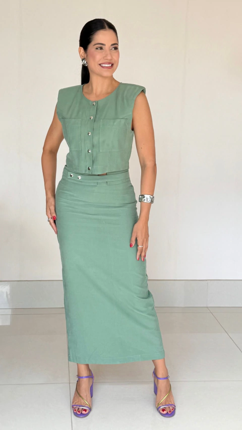 Apresentamos o Conjunto Lavínia, uma combinação de charme e modernidade em tecido leve e confortável. Composto por um top estruturado e uma saia midi de cintura alta, é a escolha perfeita para quem valoriza peças versáteis e elegantes para o dia a dia ou ocasiões especiais. O acabamento refinado e o corte impecável garantem um visual alinhado e cheio de personalidade.