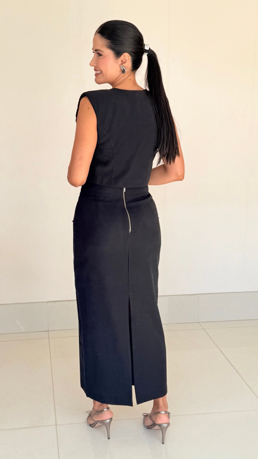 Comprimento midi com fenda discreta na parte de trás