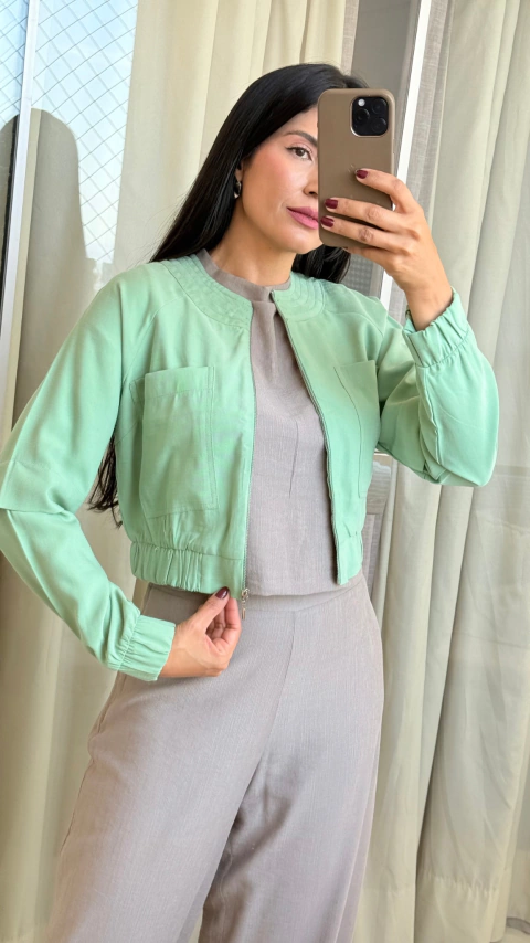 Com design moderno e toque leve, a jaqueta Manu é perfeita para dar um up em qualquer look! Confeccionada em tecido maleável e confortável, ela possui modelagem curta, elástico na barra e punhos, bolsos frontais funcionais e fechamento por zíper. O detalhe de recortes nos ombros e a gola arredondada com acabamento pespontado garantem um visual despojado e atual.