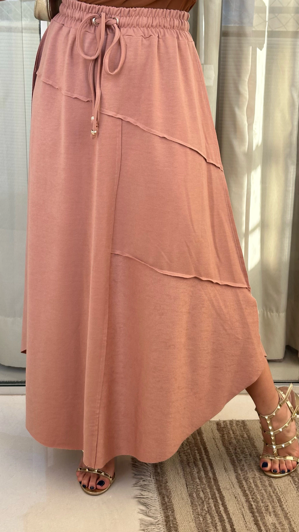 Saia Alice, com cintura alta e elástico com amarração, essa saia une conforto e estilo em uma peça versátil. O caimento leve e o recorte diagonal trazem modernidade, perfeita para compor looks casuais ou sofisticados. Combine com blusas leves, sandálias ou até um salto para um visual ainda mais elegante.