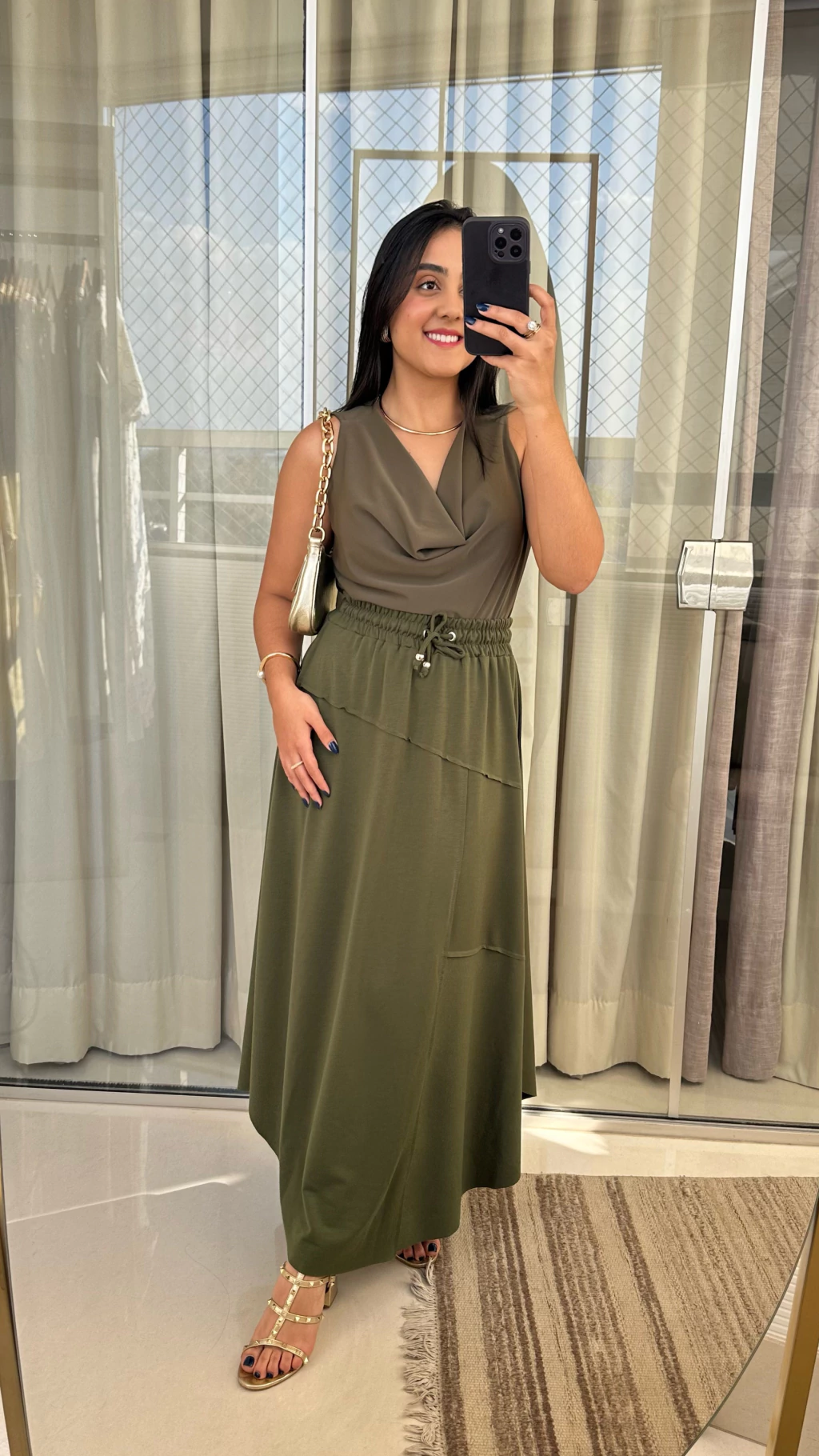 Saia Alice, com cintura alta e elástico com amarração ajustável, essa saia une conforto e estilo em uma peça versátil. O caimento leve e o recorte diagonal trazem modernidade, perfeita para compor looks casuais ou sofisticados. Combine com blusas leves, sandálias ou até um salto para um visual ainda mais elegante.