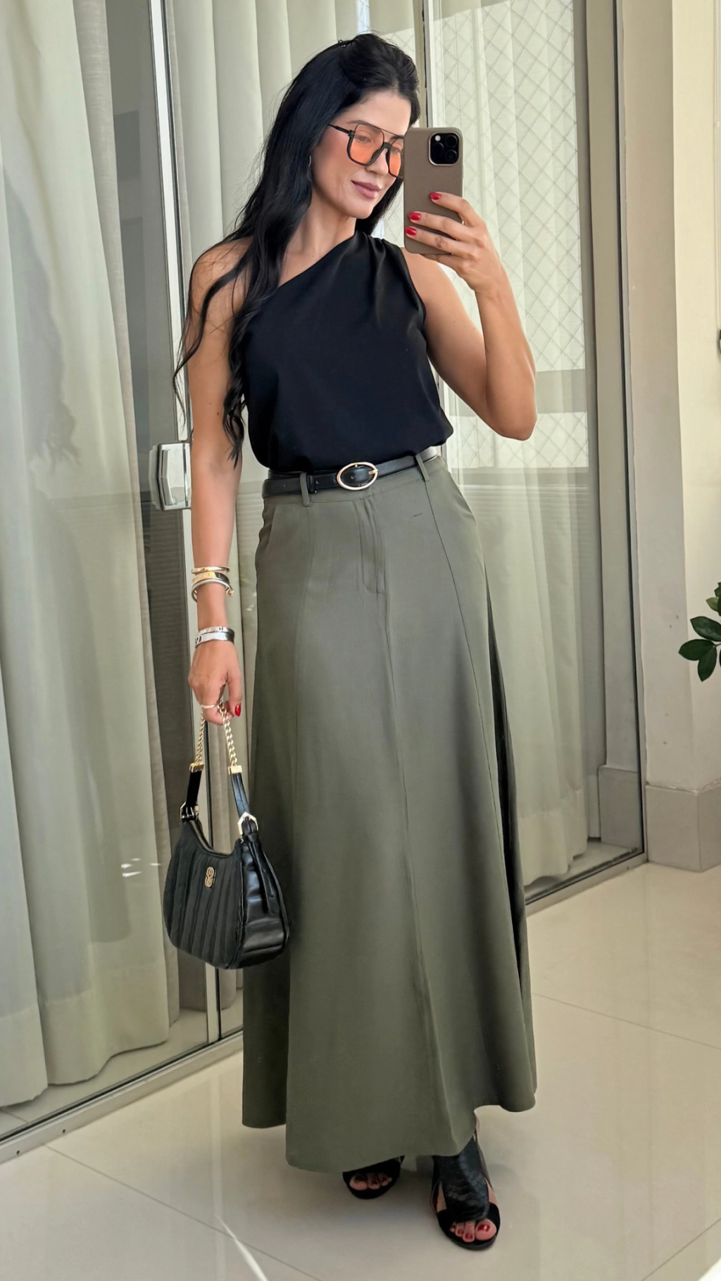 O corte em A valoriza diferentes silhuetas, destacando a cintura e alongando visualmente a silhueta de forma sutil e sofisticada.