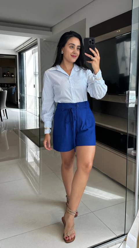 Short Bela é um moderno, leve e impecavelmente estruturado. Confeccionado em tecido macio, traz cintura alta, amarração frontal ajustável e pregas que valorizam a silhueta. O tom azul vibrante entrega presença imediata, perfeito para composições elegantes no dia a dia ou produções sofisticadas à noite. Versátil, confortável e com acabamento premium. O short que transforma qualquer look.