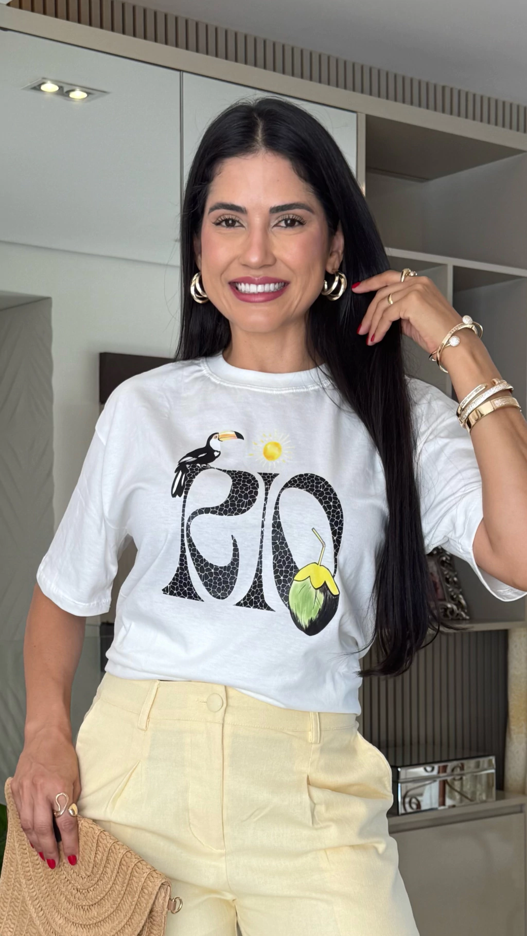T-shirt básica, tecido leve e fresco. Ótima para compor produções despojadas, casuais, descontraídas e criativas.