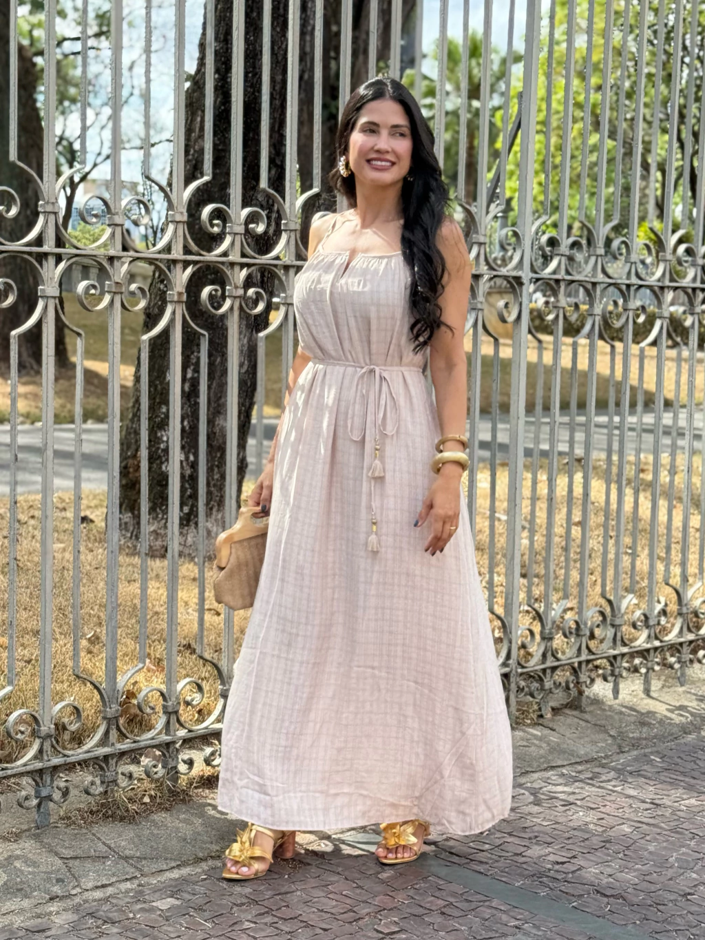 Leve, delicado e com um toque natural, o Vestido Manuela é a escolha perfeita para dias ensolarados. Seu caimento fluido e tecido suave proporcionam conforto e elegância, enquanto o detalhe ajustável na cintura valoriza a silhueta com sutileza. Um modelo versátil que transita com charme entre o casual e o sofisticado.
