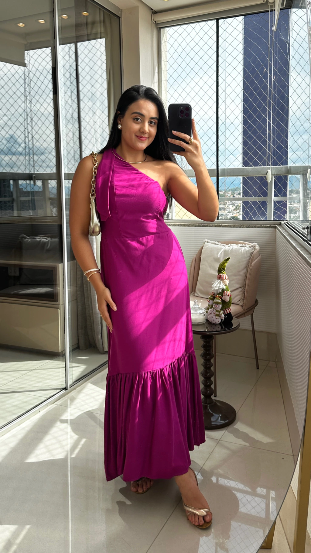 Com decote um ombro só e caimento impecável, este vestido traz um toque sofisticado e contemporâneo ao look. A modelagem valoriza a silhueta sem abrir mão do conforto, enquanto o babado na barra adiciona movimento e feminilidade.